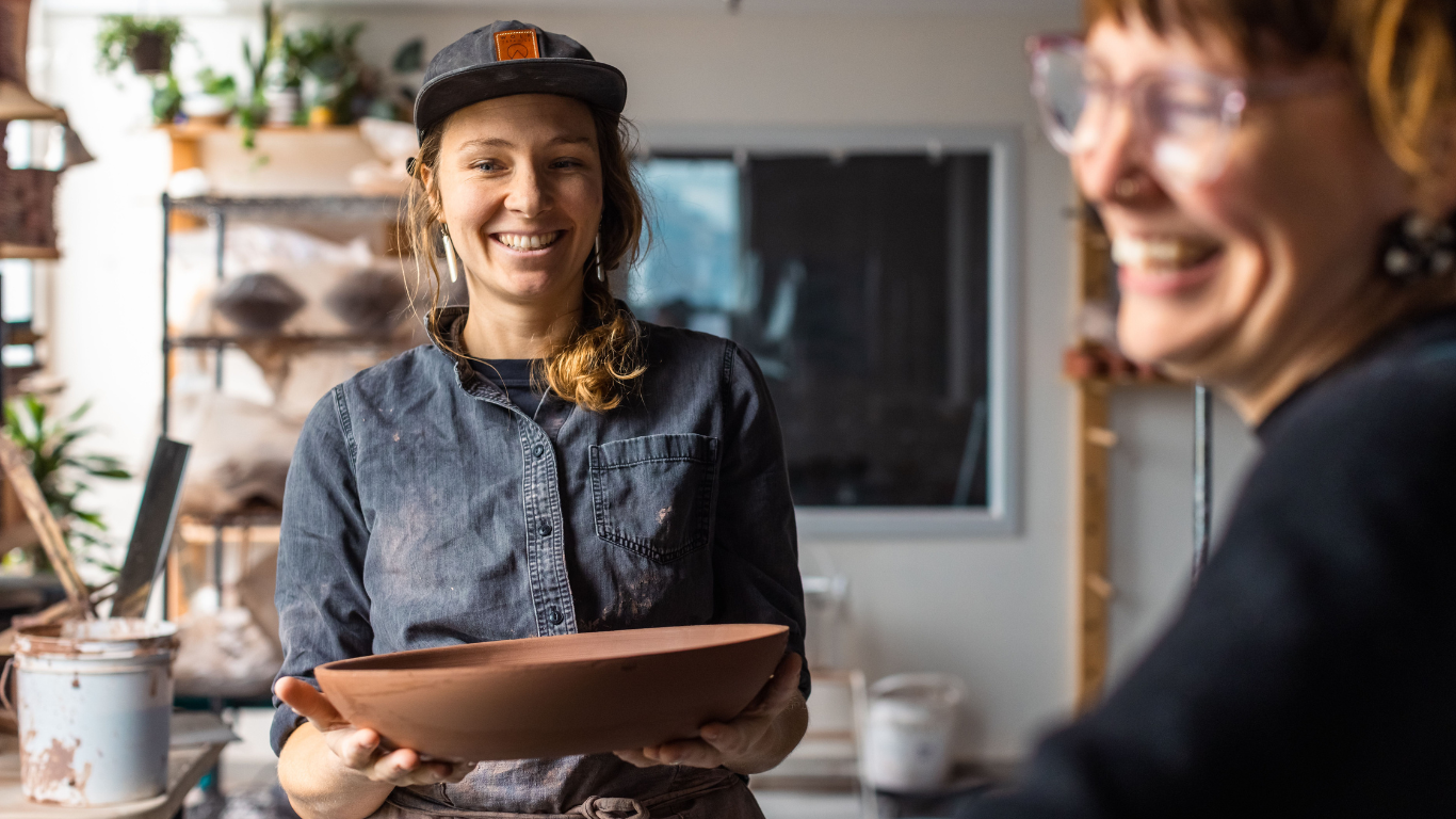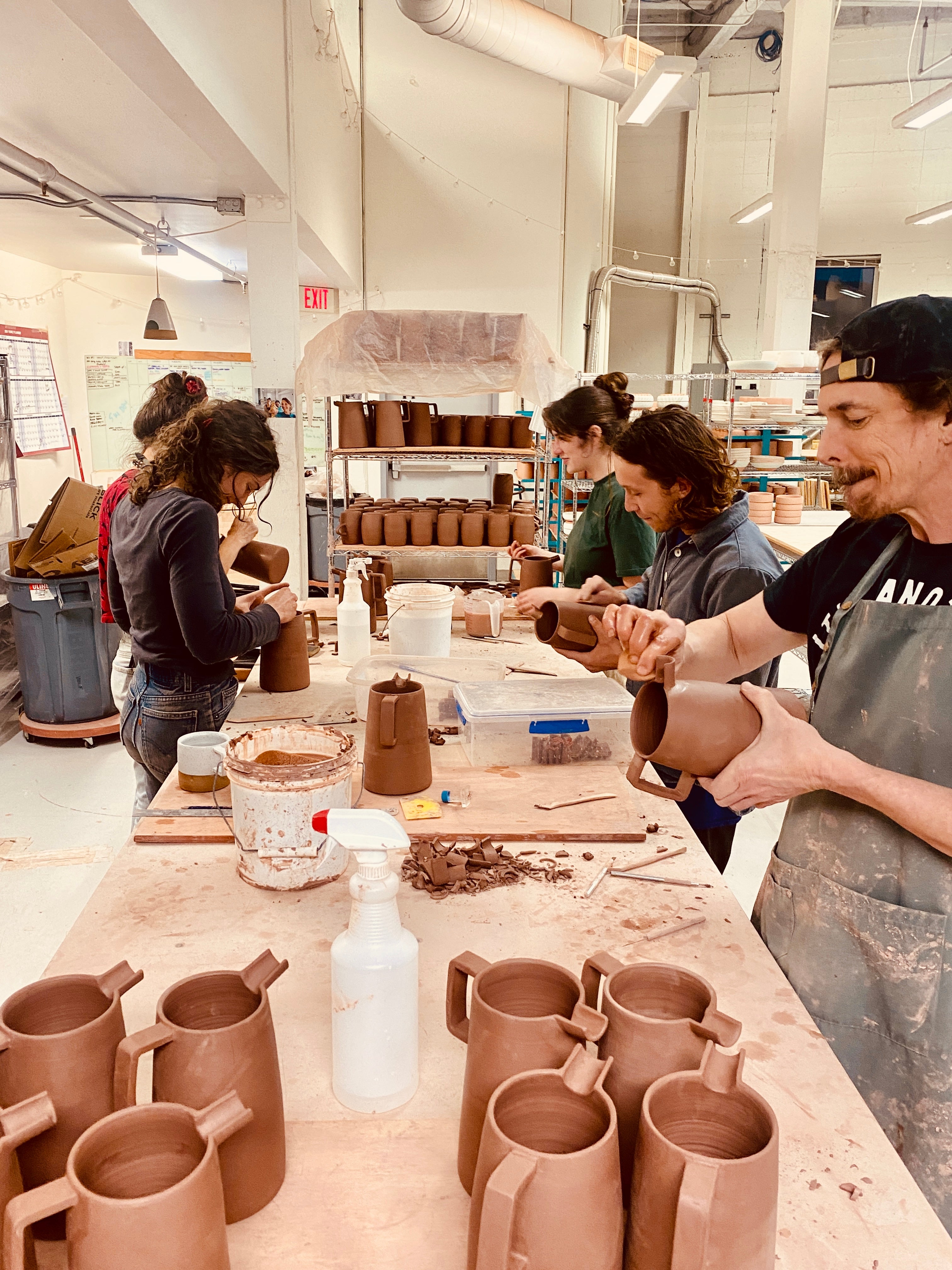 We are here to make goods that we are proud of, both for their function and their beauty. A commitment to a fair and caring work environment is at the core of our philosophy. The price points of our handmade ceramics are dictated by carefully calculating the time and energy that go into each piece, supporting a fair and decent wage for all of our team members. We source our clay from a local manufacturer before hand making, trimming, glazing and firing all of our pieces at our studio in Hood River. Many of our forms are still hand-thrown on a potter’s wheel, though in recent years we’ve begun embracing molds and other tools that allow us to grow and be kinder to our bodies.