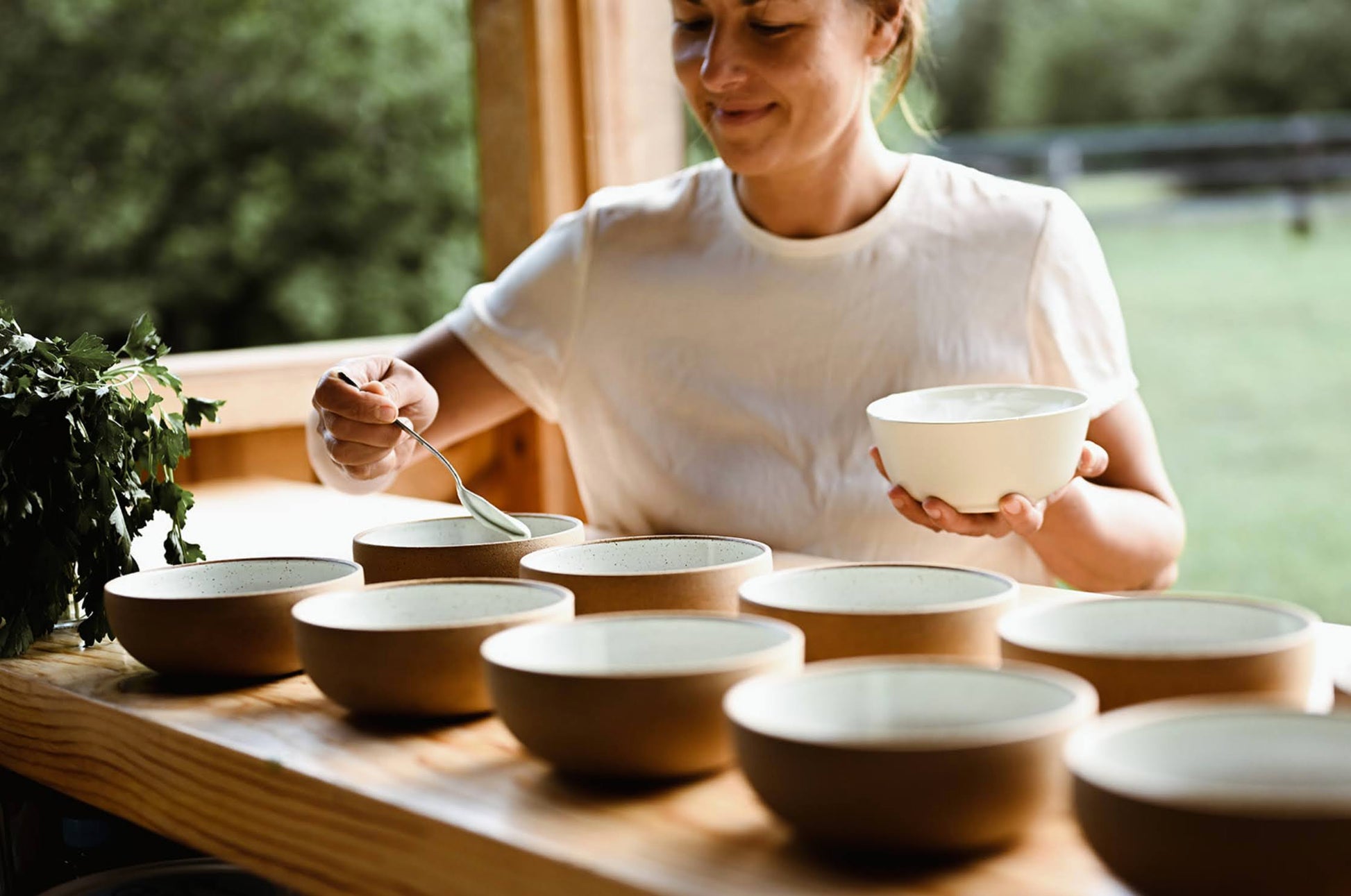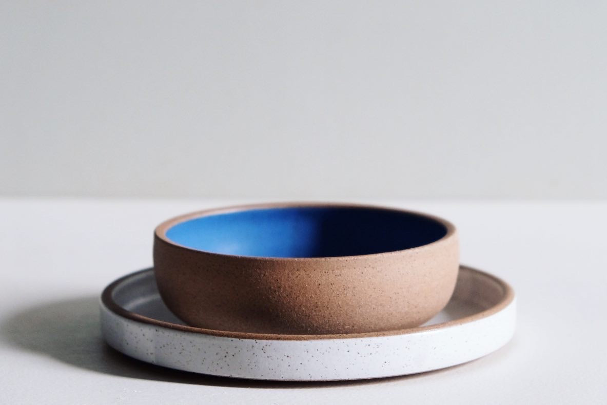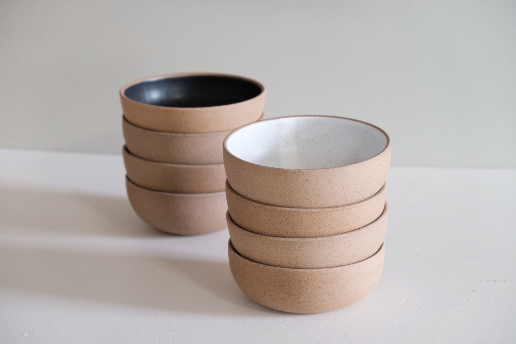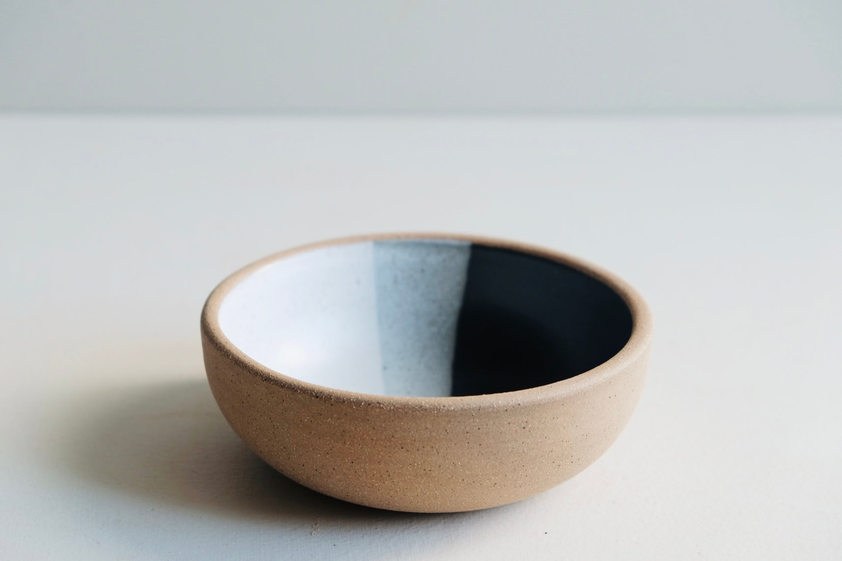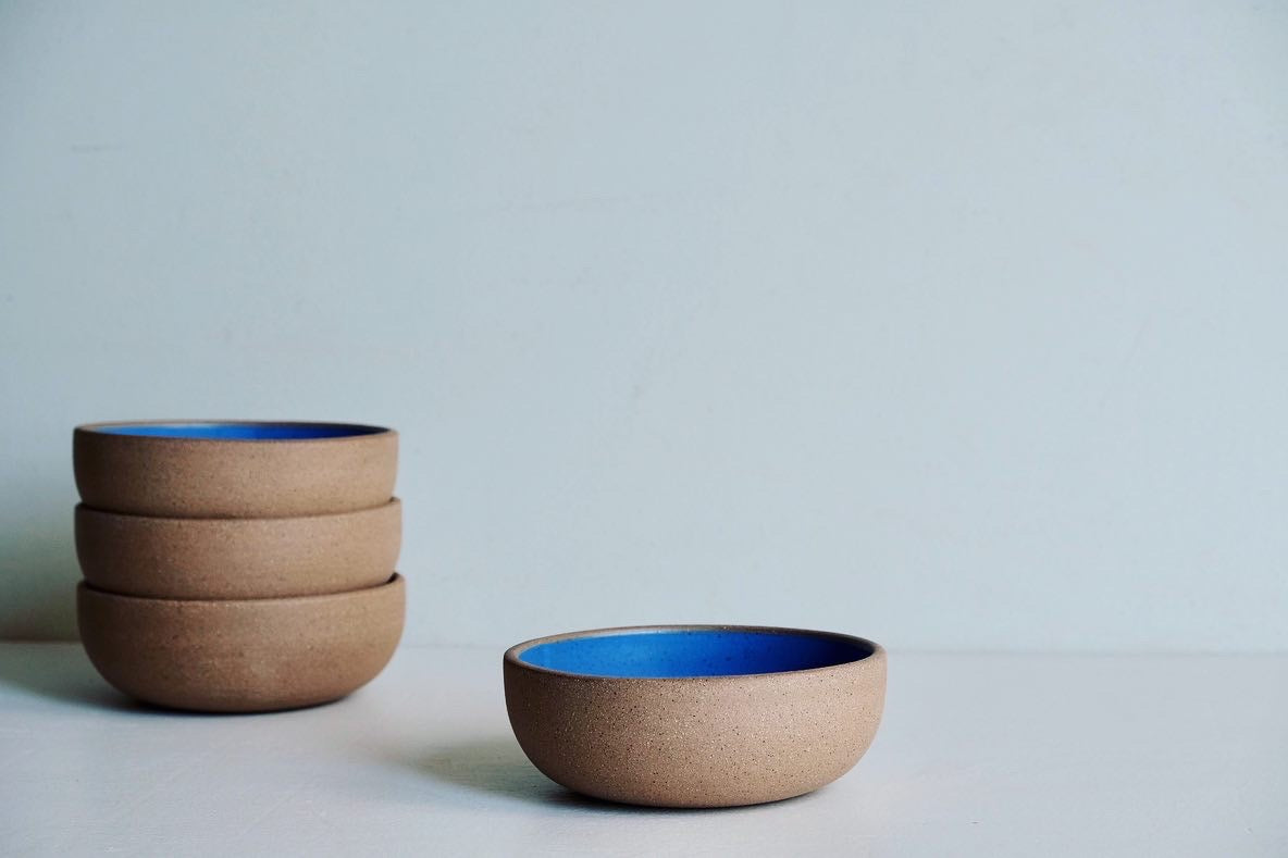 We wax the outside of these bowls so we can dip them in glaze and keep the outside raw. We love the juxtaposition of our satin glaze with the earthy raw clay.